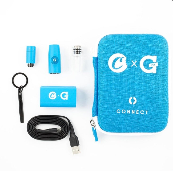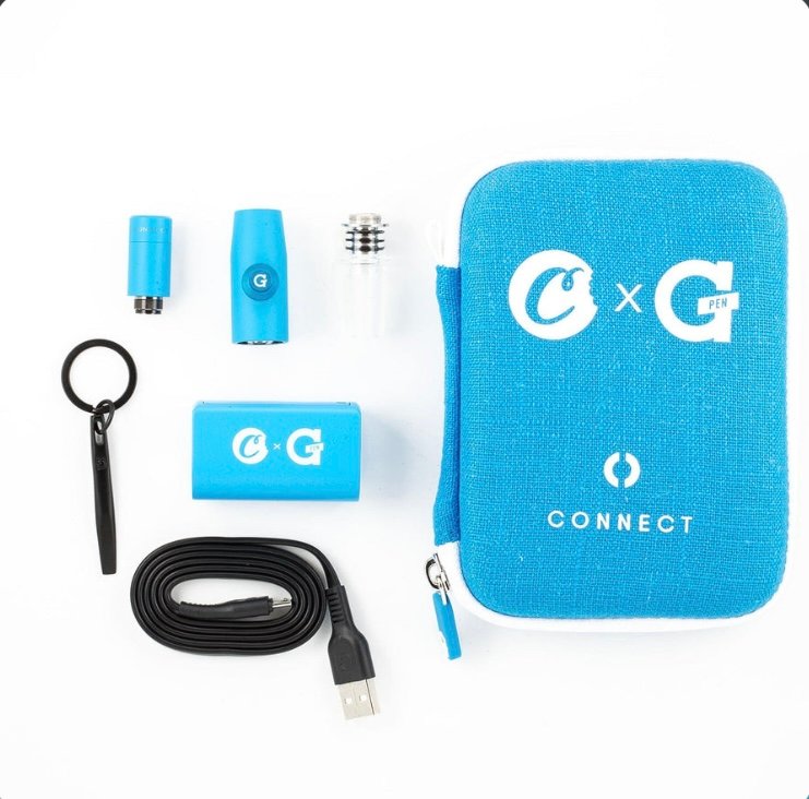 Designed in collaboration with legendary Bay Area rapper and entrepreneur, Berner, G Pen is pleased to announce the Cookies x G Pen Connect Vaporizer.  Fully customized throughout, including a Connect Battery, Tank, Housing and Hemp Travel Case all in the universally recognized Cookies blue, this limited-edition release is both visually stunning and revolutionary in its functionality, as it pairs with any glass-on-glass water piece in your existing collection.