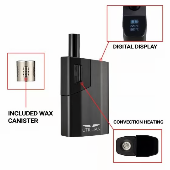 One of the standout features of the Utillian 621 is its wax compatibility, allowing users to vaporize both dry herb and solid concentrates with ease using the included wax canister. With precise temperature control ranging from 160°C to 220°C (320°F-428°F), users can customize their sessions to achieve the perfect balance of flavor and cloud production.