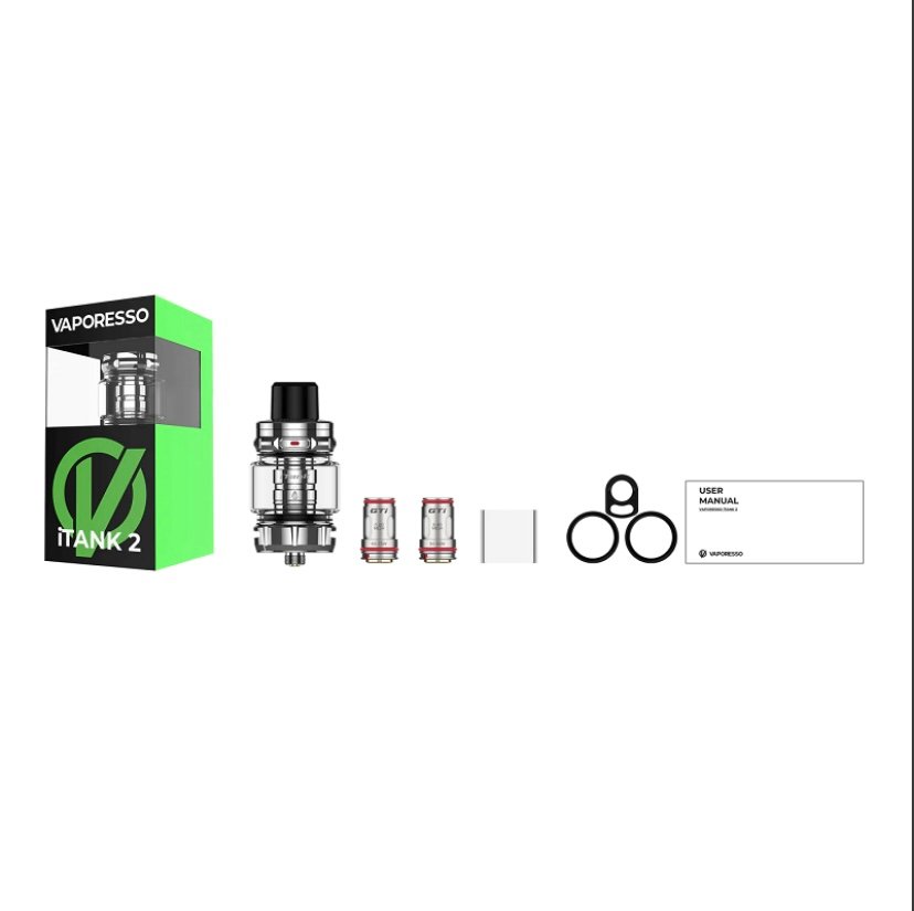 Explore the Vaporesso iTank 2 Atomizer, boasting an impressive 8mL e-liquid capacity, an auto-opening top-fill mechanism, and compatibility with GTi Mesh Coils, complemented by dual slot bottom airflow. Crafted from robust stainless steel, the Vaporesso iTank 2 combines sleek aesthetics with durability, ensuring you enjoy dense vapor clouds and rich flavor from your preferred eJuice.